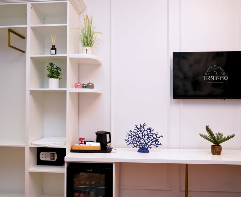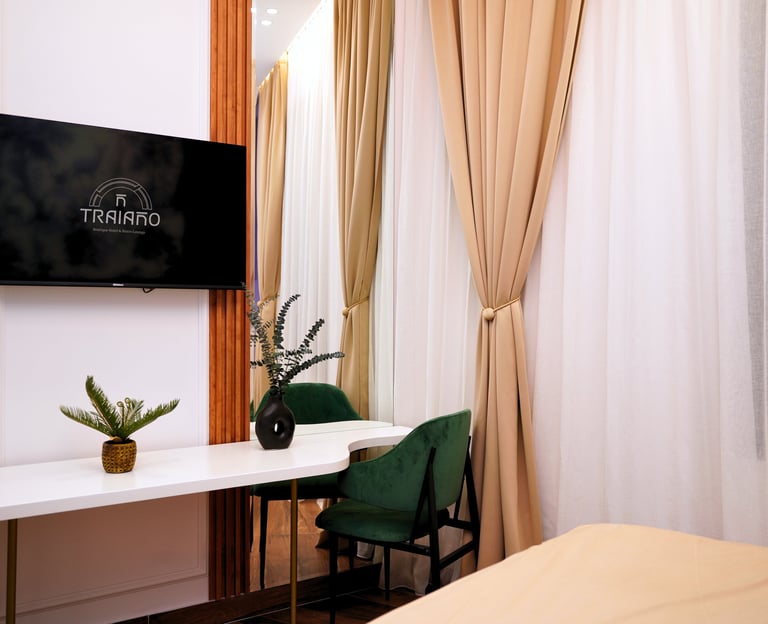 Enjoy relaxing moments on the private terrace with city views, a pleasant outdoor space perfect for unwinding after a day of sightseeing or business. The room’s modern layout combines elegance with functionality, creating a warm and inviting atmosphere.