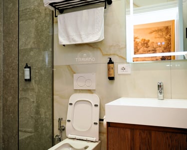 The private bathroom includes a modern shower, along with complimentary toiletries, slippers, towels, and a hairdryer to enhance your stay. Room amenities include: